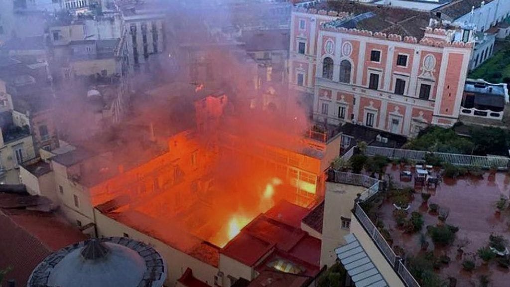 NEPAL - In Napels heeft brand gewoed in een historisch theater. De koepel van het Teatro Sannazaro is ingestort en terechtgekomen in de grote zaal.